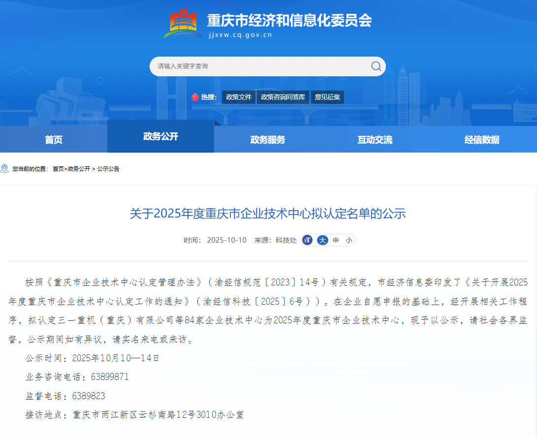 近日,重庆市经济和信息化局公示2025年度重庆市企业技术中心认定名单,重庆标能瑞源储能技术研究院有限公司(以下简称“重庆标能”)凭借在锂电池制造领域先进的技术水平和产业化实力正式通过重庆市经济和信息化局评审,成功认定为“重庆市企业技术中心”,标志着公司在技术创新实力获得了权威认可。