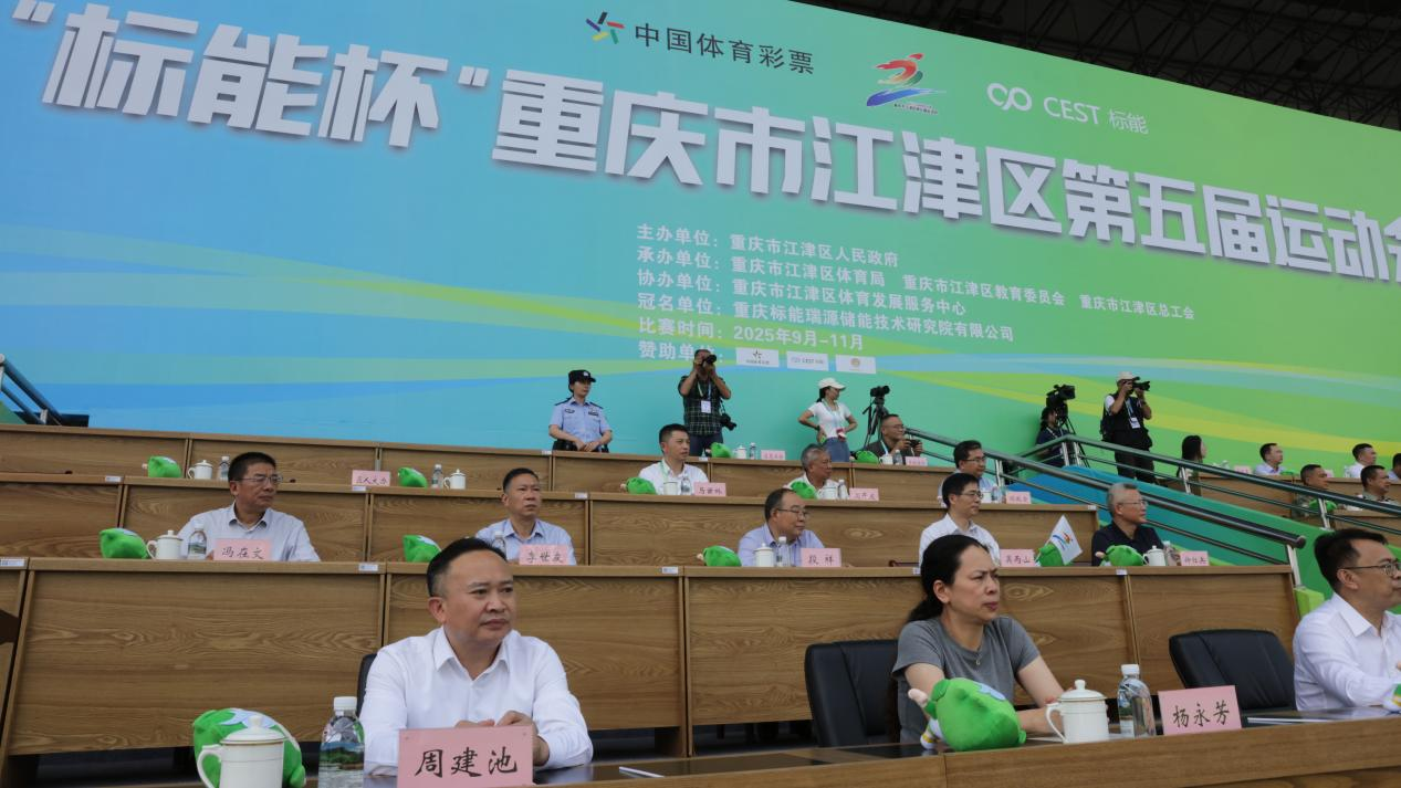 10月16日下午,“标能杯”重庆市江津区第五届运动会在区体育中心体育场拉开帷幕,区委书记唐大军出席开幕式并宣布开幕。重庆标能瑞源储能技术研究院有限公司(以下简称“重庆标能”)作为运动会独家冠名单位,携手助力本土体育事业,传递绿色低碳与美好生活理念。
